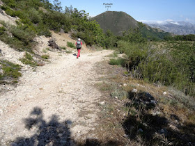 La pista serpentea al pasar por el Alto el Cuerno y Los Barreos girando al Oeste