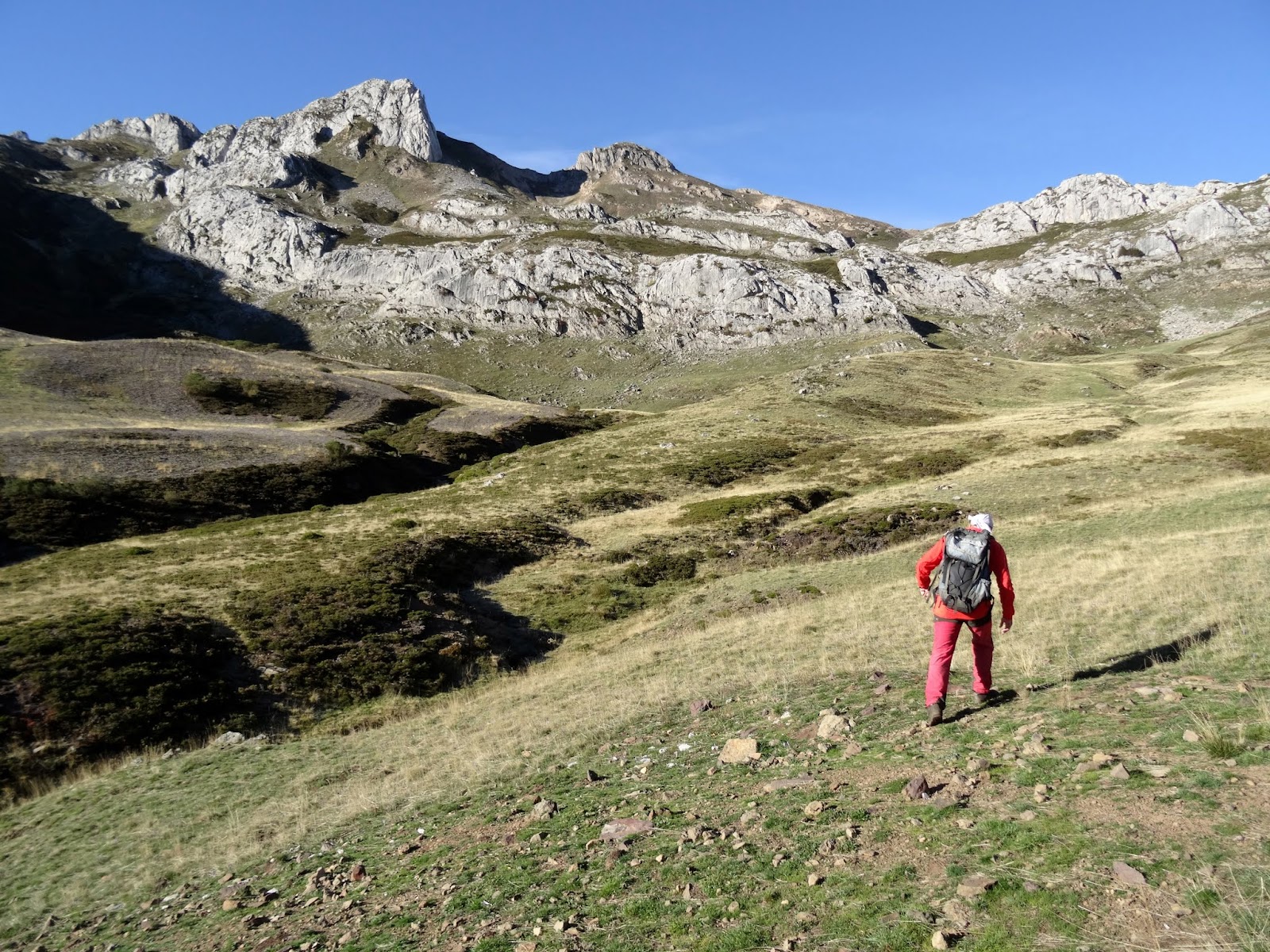 Con el murallón calizo de la Cordillera al frente seguimos ladera arriba en busca de otra collada