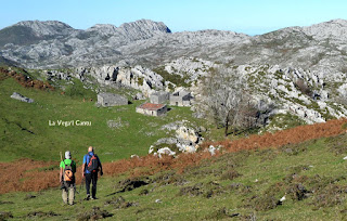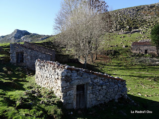 Tras disfrutar de tan espléndidas vistas bajamos de nuevo hacia El Colláu Piedrallacia mientras dejamos bajo nosotros las cabañas de La Piedra l'Osu por las que pasaremos a la vuelta