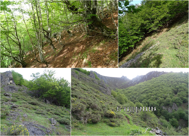Mientras camino echo un vistazo hacia el fayéu que cubre gran parte del Val.le Praera y que, anteriormente, atravesé