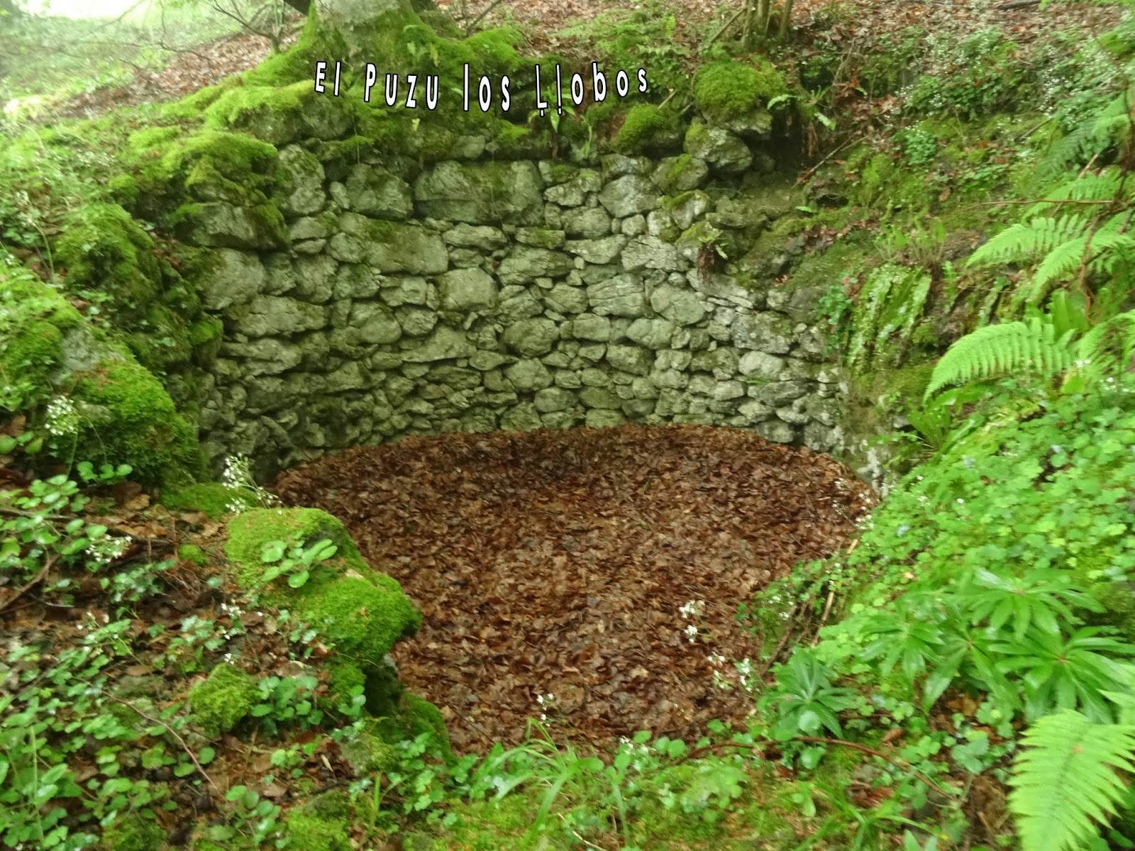 Enseguida damos con El Puzu los L.lobos, al borde izquierdo del camino, un pozo cilíndrico rodeado de paredes de piedras calizas de unos 3 m de diámetro por 6 m de profundidad aunque ahora está parcialmente tomado por las "fueyas"