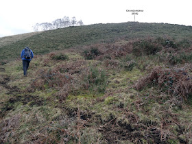 El camino principal bordea el cordal por su extremo occidental aunque nosotros acometemos directamente la ascensión al Sur siguiendo un apenas perceptible sendero que discurre por el felechal. Esto en primavera-verano debe ser "garrapatalandia" (je, je)
